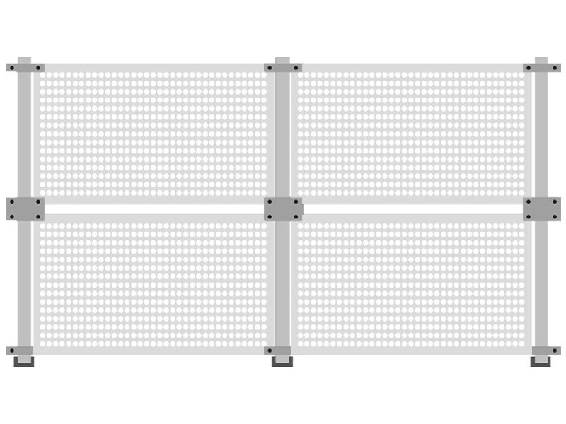 沖孔圍擋板子厚度:0.7mm-2mm之間都可以加工, 常用長寬1米*2米;1.2米*2米。 沖孔圍擋立柱常用:厚度1.8mm-3mm;80mm*80mm;100mm*100mm;120mm*120mm。