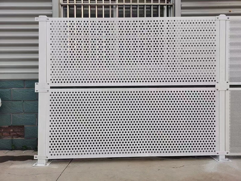 沖孔設計的特別之處在于其優化了氣流和視線穿透性?,同時保持圍擋結構穩固。我們的沖孔圍擋采用精密沖壓工藝,孔型規整,邊緣光滑無毛刺,有效減少風阻和噪音。店鋪提供的沖孔圍擋孔徑為6mm,網孔均勻,開孔率適中,既保證通風透光,又確保圍擋的強度和耐用性。此外,沖孔設計還便于安裝時固定和連接,提升施工效率。